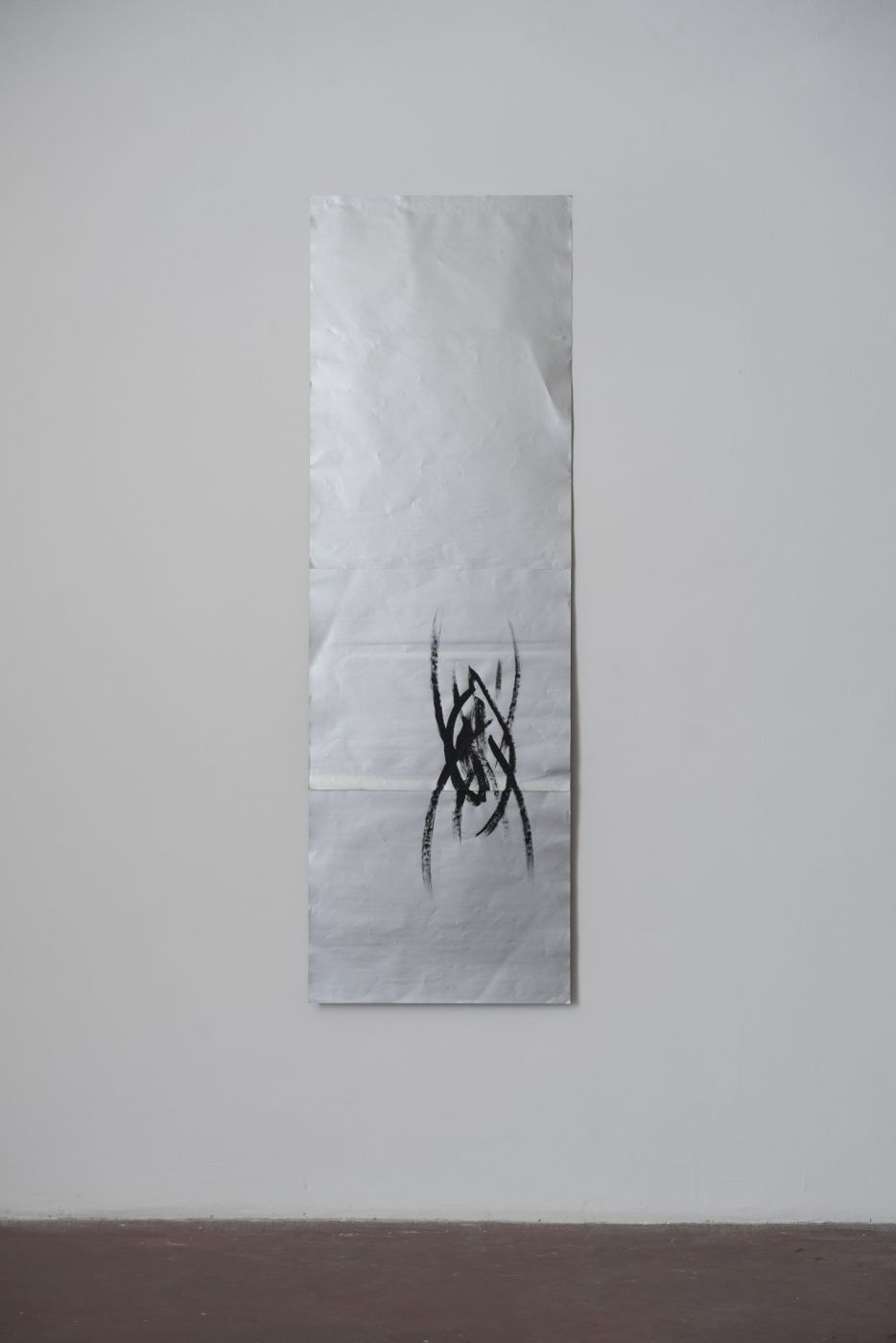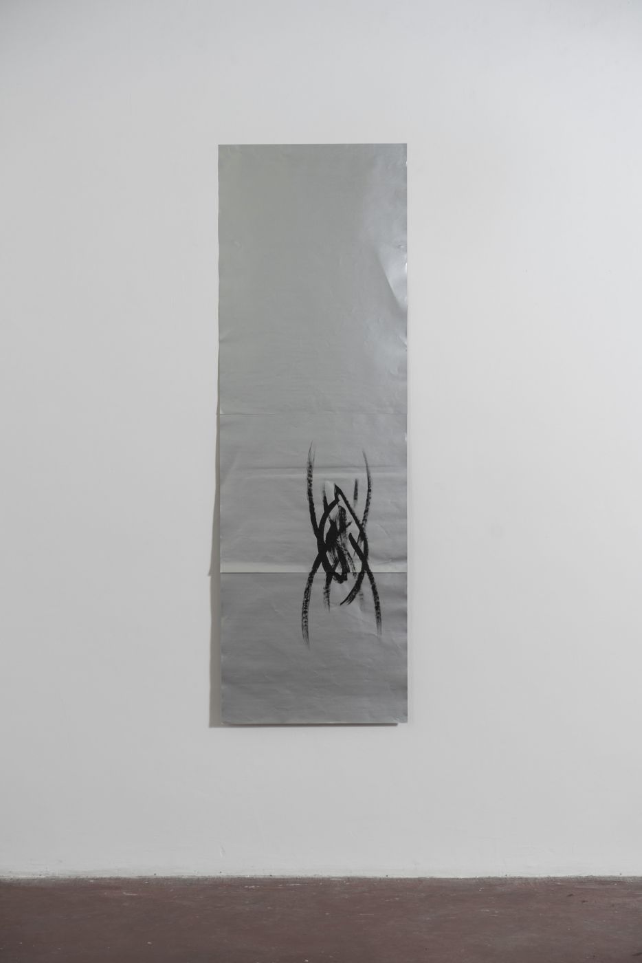 ARANEA Paper, binder, pigment 100 × 70 SO-01232 Exhibition FLYRT, 2018 MORT A CREDIT, 2018 Series EMOJI SHADOW Series Collectio ARANEA Colletio SILVER Collectio