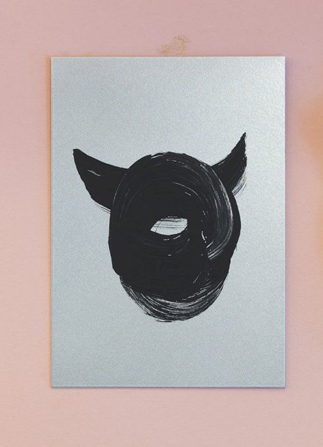 DIABOLUS Paper, binder, pigment 21 × 29,7 cm SO-00156 Exhibition INFERNO CHICAGO, 2019 Series EMOJI SHADOW Series Collectio DIABOLUS Collectio SILVER Collectio